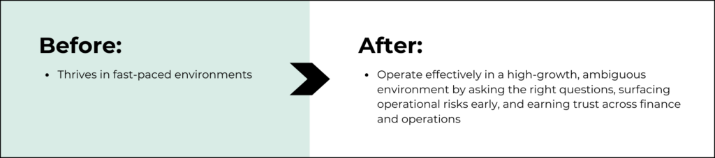 Don’t overlook cross-functional dynamics. For example, you’re hiring a Controller who will partner closely with Operations. Take the time to align with your COO or President on what excellence looks like in that relationship. Their input can shape a more targeted and effective hiring process.